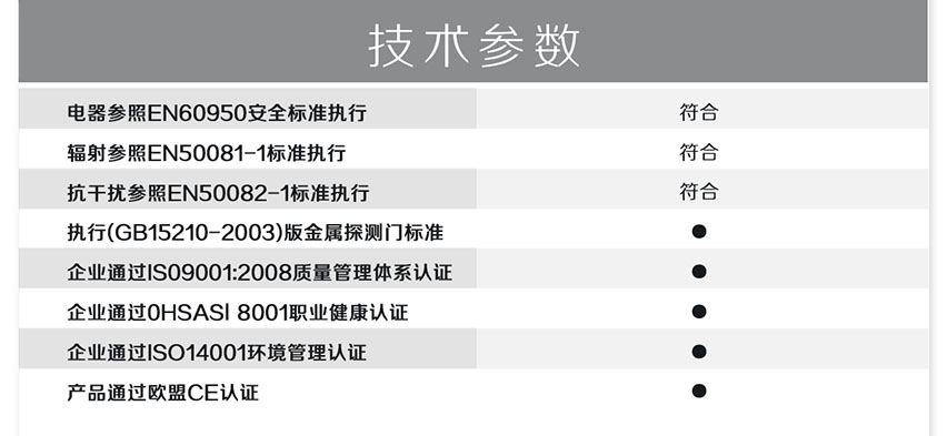 HC-TY300D金屬探測門(橫梁式)感應快、探測準、靈敏度高、抗干擾強、高穩定性,電源設計在主機頂端,防水防潮,非常人性化;能滿足各行業用戶需求。此款安檢門嚴格執行國家《GB15210-2003通過式金屬探測門技術通用技術規范》;